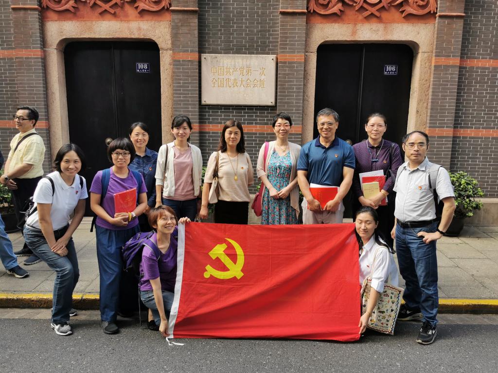 2019年10月12日下午13:00,外语学院英语系第一支党支部的九名党员教师汇集中共一大会址纪念馆。一大会址位于上海市兴业路76号,是一幢沿街砖木结构旧式石库门住宅建筑,坐北朝南。这里是中国共产党的“产房”, 是梦想起航的地方。