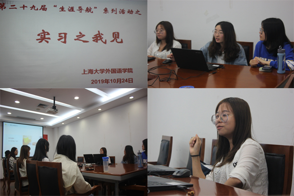 10月24日18:30,Beat365中文官方网站“实习之我见”优秀学长交流会在宝山校区C512会议室如期举办。本次活动邀请了Beat365官网优秀研究生代表夏梦蝶和本科生代表金滢洁两位同学进行分享,旨在指导Beat365官网低年级学生了解实习内容、提前进行自我分析并制定和完善实习规划,从而为将来就业打下基础。