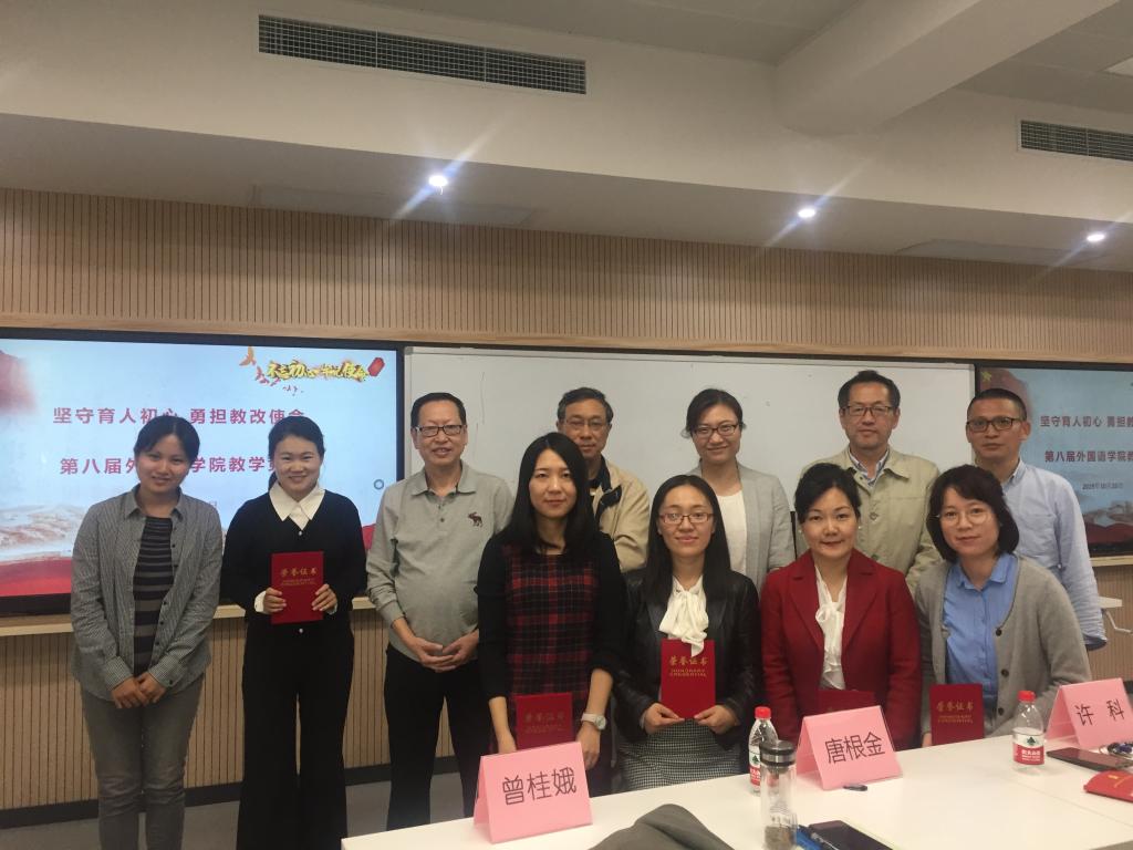 10月25日上午,Beat365中文官方网站分工会和青联会联合举办了名为“坚守教育初心,勇担教改使命”的教学比赛,共有来自英语、日语、法语、西班牙语等不同语种的多位教师参加比赛。本次比赛邀请了来自教务处和考评办的专家,与学院的几位教授共同担任评委。学院党委主持工作副书记曾桂娥教授、主持工作副院长邓志勇教授、副书记贾小琴老师,以及英语系和日语系的教师们出席了本次比赛。曾桂娥教授为比赛致辞。