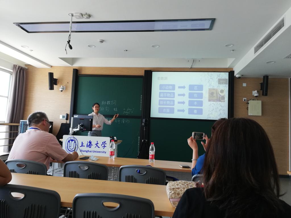 首先,韩璐璐老师用日语模式试讲了“助数词”,再用中文模式试讲“暧昧的表现”。随后,与会教师纷纷建言献策,从多种角度给出了众多优质建议。赵莹波老师认为教学例子可以更换其他典型,日语授课的语调可以调整;王颀老师谈了讲课模式的选择和建议;陈秀猛老师强调突出教学重点,同时兼顾学生技能的提高;张赫芯老师建议增加授课的闪光点等。辛明军老师的建议最为全面细致,他对选择的比赛模式、课程内容的导入、教学活动的设计、课程思政的提炼乃至PPT模板、板书、着装等等,进行了全方位的点评及建议。顾晓英老师进行了补充,提出了更高要求,她希望韩老师完善教学和板书设计,进一步采用信息化手段,更好发挥学生主动性,与时俱进,体现出课程的挑战性和前沿性。
