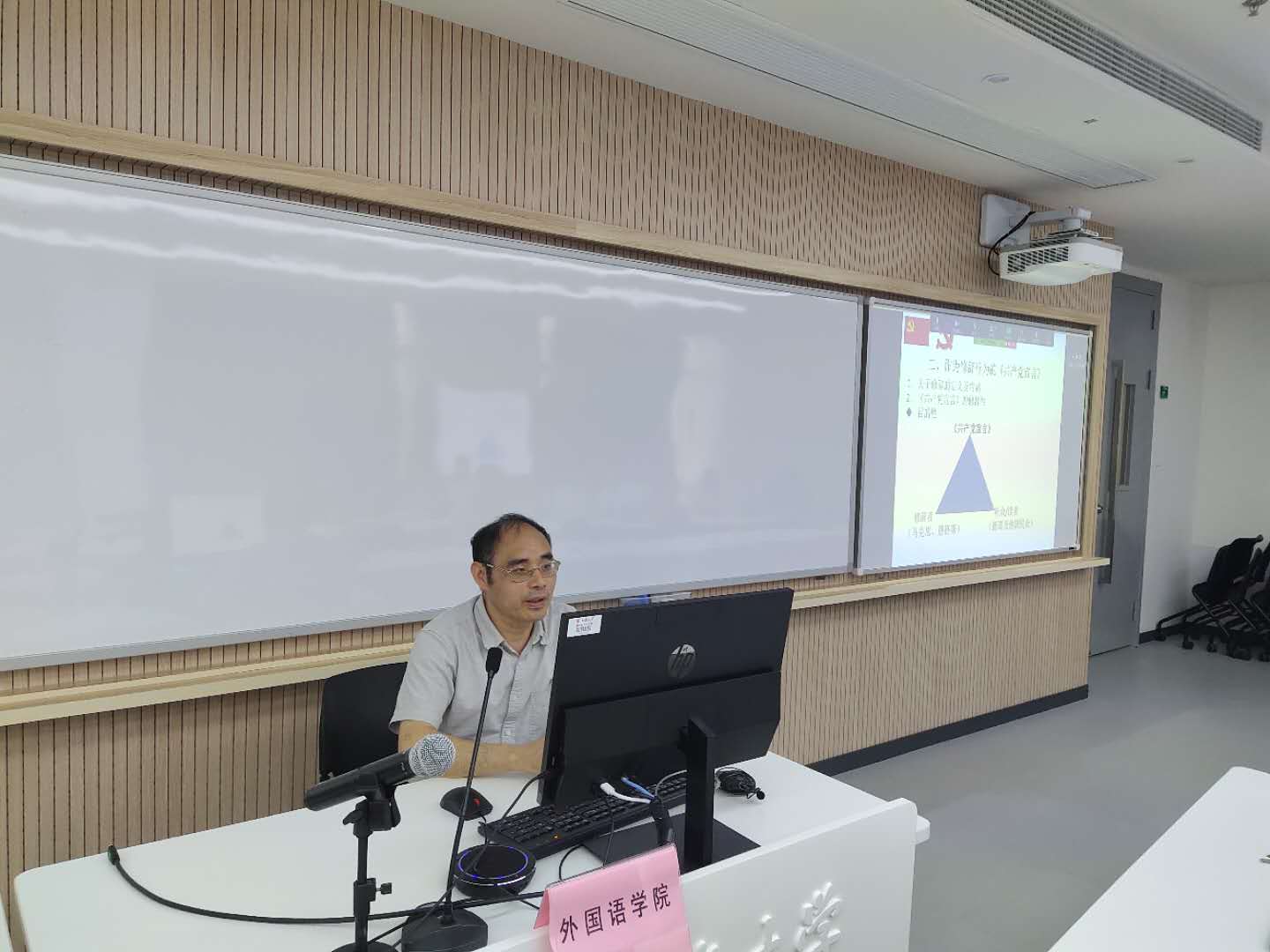 随后,邓志勇以“《共产党宣言》的逻辑-----修辞学解读”为题,结合陈望道的第一版翻译从语言学角度展开了分析阐释,结合共产党宣言的哲学逻辑关系,以当时的时代背景语境为切入点进行了深入剖析,指出学习“四史”并非一种简单的历史学习,更重要的是把历史和理论相结合,历史和现实相结合。邓书记的讲解不仅再现了经典原著的魅力所在,更让学习会师生领悟了党的历史背后的哲学逻辑。