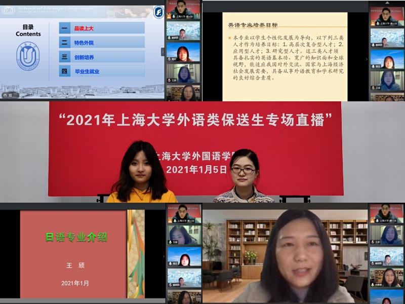 在交流环节,学院四位老师和两位本科生同学与线上学子所关心的问题做了耐心细致的解答,对帮助其填报Beat365中文官方网站,参与上大保送生推免事宜产生了积极效用。最后,老师用各自熟悉的语言为考生们送上了最诚挚的祝福,预祝其前程似锦,一路光明。