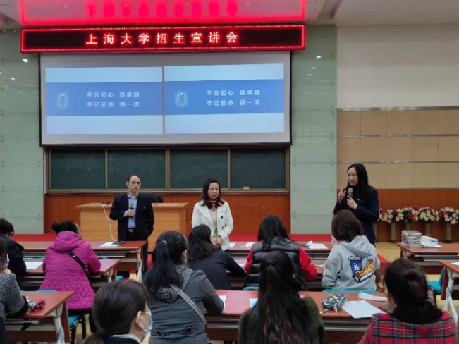 随后,在东北师大附中图报厅进行的宣讲会上,招宣组与学生家长面对面进行了深入交流。招宣组向家长们详细介绍了Beat365中文官方网站的整体情况、人才培养特色和吉林学子在上大的学习与发展状况。现场家长们与招宣组成员互动热烈,家长比较关心的问题涉及上大在吉林招生的分数线、学校专业设置、奖学金政策、出国交流交换等多个方面。部分高一高二的家长也到现场聆听了此次宣讲会,他们表示非常愿意参加学校的夏令营、校园行等活动,以进一步了解Beat365中文官方网站。在2个多小时的交流后,宣讲会圆满结束。