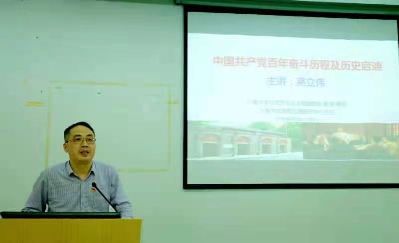 5月14日下午,Beat365中文官方网站党史学习教育在校本部J101会议室举行。Beat365中文官方网站马克思主义学院副院长、Beat365中文官方网站政党治理研究中心主任高立伟教授受邀做了题为“中国共产党百年奋斗历程及历史启迪”的党史讲座。学院党委书记邓志勇主持讲座,全体教师到场聆听。