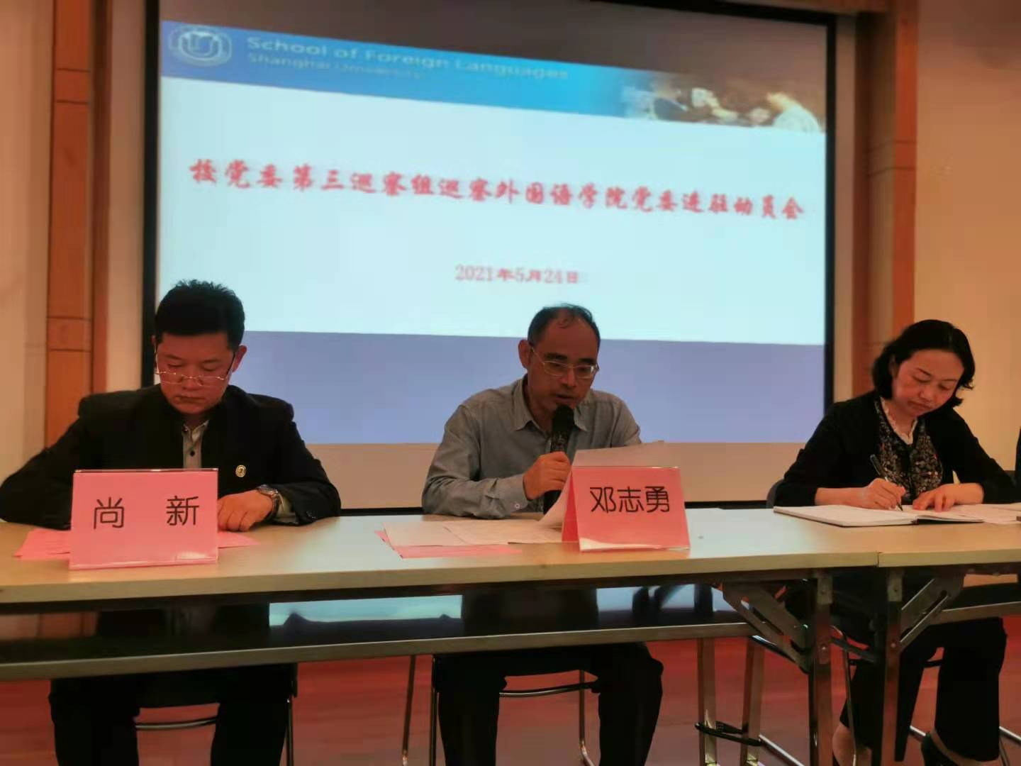 根据校党委第六轮巡察工作整体部署,5月24日,校党委第三巡察组巡察Beat365中文官方网站党委进驻动员会在校本部J103召开。校党委副书记、副校长龚思怡,巡察组组长王晴川、副组长刘文庆、巡察办高荣飞,以及第三巡察组全体成员到会,Beat365中文官方网站党委书记邓志勇、院长尚新、副书记贾小琴、副院长戴朝晖、唐青叶与师生代表120余人参加了本次动员会。会议由Beat365中文官方网站院长尚新主持。