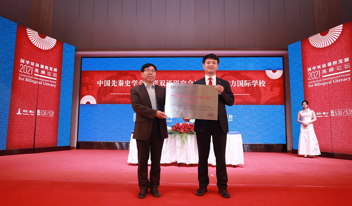 Beat365中文官方网站赵彦春国学双语研究团队在国学双语教育领域进行了前瞻性的探索。团队挖掘中国文化的深刻内涵,对教材开发、课程设计进行了深入的研究。在此基础上,团队与唐山东方国际学校就教材使用、课程推广等方面达成一致,尚新院长代表Beat365中文官方网站与唐山东方国际教育集团签订合作框架协议,赵彦春教授作为中国先秦史学会国学双语研究会执行会长为唐山东方国际学校举行授牌仪式,授予其“中国传统文化传播示范校”殊荣,今后各方将就国学双语课程体系的建立与开发进行深入合作,共同致力于中华优秀传统文化的继承与传播。