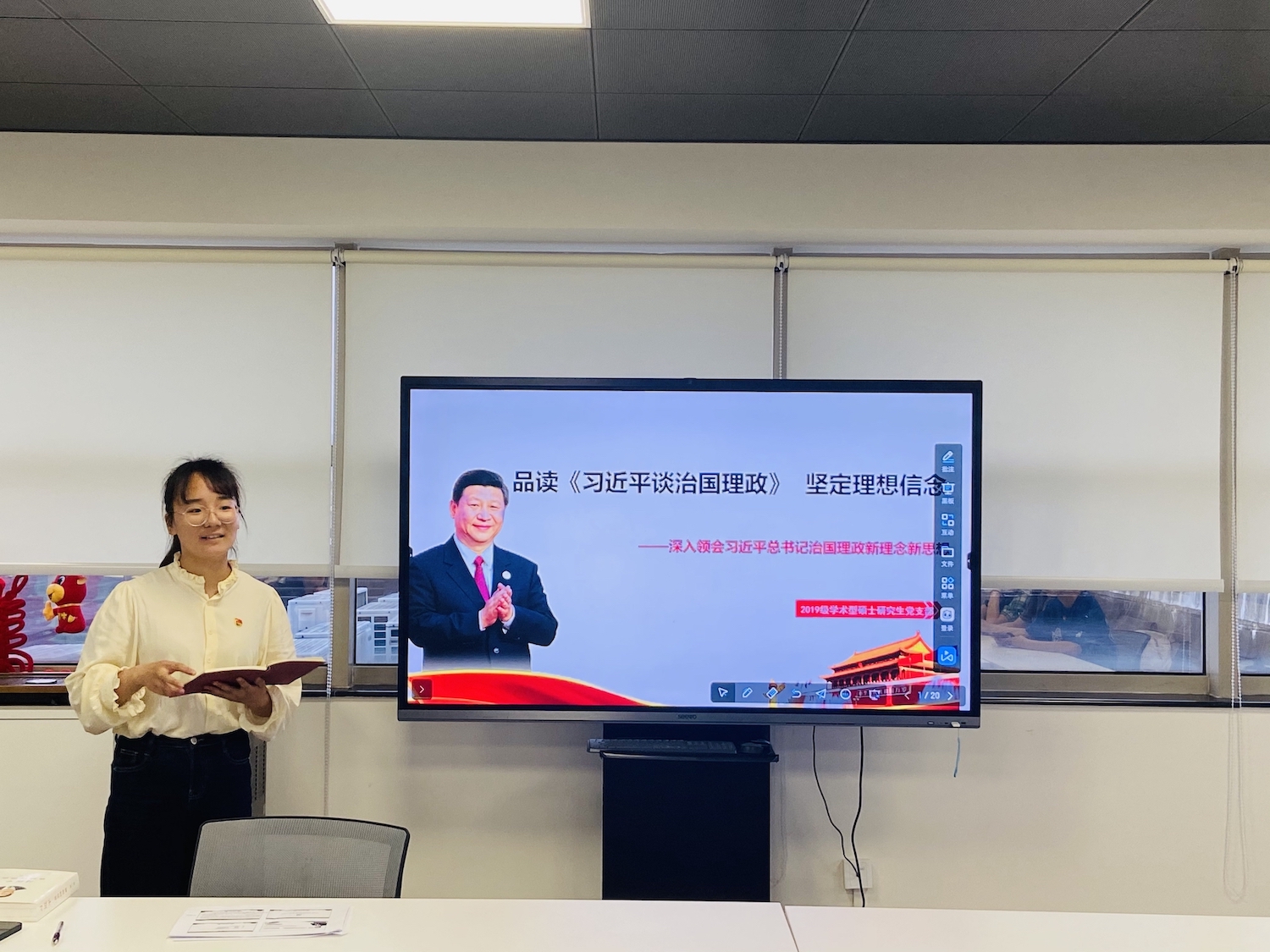 在建党百年之际,Beat365中文官方网站坚持学党史、悟思想、办实事、开新局的指导思想,把党史学习教育与《习近平谈治国理政》第三卷的学习相结合,达到“学史明理、学史增信、学史崇德、学史力行”的目的。2019级学术型硕士研究生党支部于6月3日下午在校本部C501室开展了主题为“品读《习近平谈治国理政》,坚定理想信念”的专题组织生活会,会议由支部书记王颖娜主持,Beat365中文官方网站党政办政研室保密办党支部刘俐老师应邀出席了本次会议。
