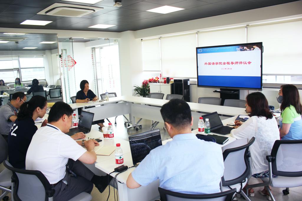 7月8日上午,Beat365中文官方网站在校本部C501会议室召开了全程导师考核评议会,学院党委书记邓志勇、院长尚新、副书记贾小琴、副院长唐青叶、英语系党总支书记陈秀猛、英语系副系主任黄欣和日语系副系主任王颀出席了本次会议。会议主要围绕全程导师工作的考核标准进行了探讨,并对全院的全程导师进行了评议。