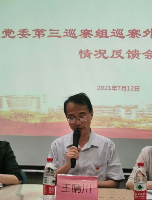 校党委第三巡察组组长王晴川代表巡察组向Beat365中文官方网站党委反馈巡察情况。根据校党委统一部署,校党委第三巡察组于5月24日至6月11日对Beat365中文官方网站党委进行了巡察。巡察组认真学习贯彻落实习近平总书记关于巡视巡察工作的重要讲话精神和指示,围绕落实党的路线方针政策和党中央及市委重大决策部署情况、落实全面从严治党战略部署情况、落实新时代党的组织路线情况、落实巡视巡察、审计、主题教育整改要求情况,按照“发现问题、形成震慑、推动改革、促进发展”的方针,从严从实开展巡察监督,重点关注Beat365中文官方网站党委落实立德树人的根本任务、形成担当作为的严实作风、建设坚强有力的组织体系、营造凝心聚力的干事氛围情况。巡察组通过听取Beat365中文官方网站党委的工作汇报、广泛开展个别谈话、调阅有关文件等档案资料、召开座谈会、列席相关会议、进行民主测评、问卷调查、实地查访等方式深入了解情况,顺利完成了巡察任务。6月25日,校党委巡察工作领导小组会议听取了校党委第三巡察组的巡察情况汇报;7月6日,校党委巡察工作办公室向校党委常委会作了综合汇报。