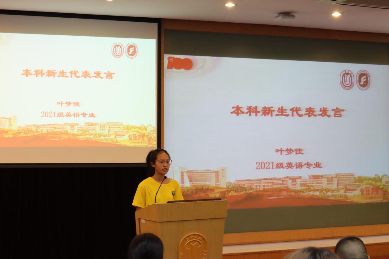 老师们表现出身为人师的温情、表达了对于同学们的殷切期盼和热情祝愿。新生代表的发言则彰显出年轻一代的蓬勃朝气。本科生新生代表叶佳梦和研究生新生代表胡泽洲分别发言,回顾过去、展望未来,两位同学表示:作为新青年,愿以时代发展为己任,携良师益友,共同进步。