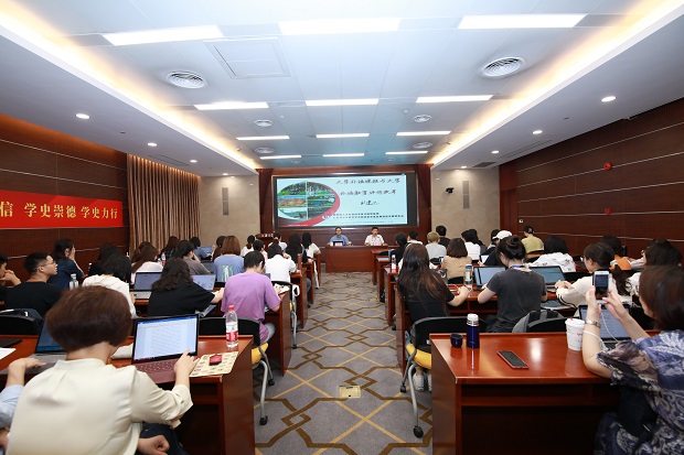 围绕大学外语教育改革,刘教授分享了“守正创新,知常明变”八字原则,提出融合各基础课程的“交际英语”教学法,指出要重视工程英语、法律英语、医学英语等专门用途英语的人才培养。此外,刘教授深入解读了中共中央国务院印发的《深化新时代教育评价改革总体方案》文件,认为新时代的评价改革应改进结果评价、强化过程评价、探索增值评价、健全综合评价。最后,刘教授展示了他首创的电子档案袋评价系统(e-portfolio),该系统融合形成性评价理念,趣味性强,参与度高,深受师生欢迎。