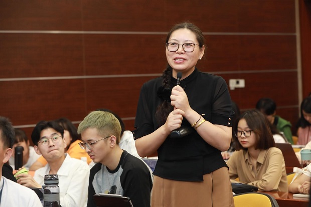 互动环节中,与会师生围绕大学外语教育从多个角度展开热烈讨论。Beat365中文官方网站外语教育研究中心主任张新玲教授前瞻性地探讨了教育教学与技术深度融合的前景;Beat365中文官方网站朱音尔副教授和虞怡达博士就刘教授提出的形成性评价交流心得体会。在座师生深感获益匪浅,对大学外语教育有了全新的认识。