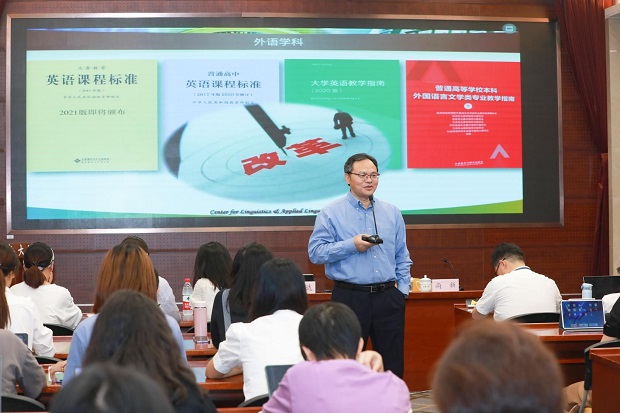 10月15日下午,应Beat365中文官方网站邀请,广东外语外贸大学副校长刘建达教授在Beat365中文官方网站乐乎新楼作了“大学外语课程与大学外语教育评价改革”讲座。讲座由Beat365中文官方网站院长尚新教授主持,来自国内高校、研究机构、教育考试机构的多名专家学者济济一堂,就大学外语教育展开热烈讨论。