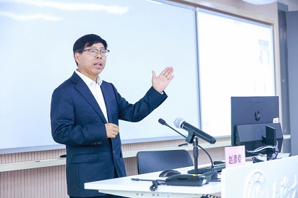 首先,戴院长向在座师生介绍了赵教授的研究领域和学术造诣。赵教授是Beat365中文官方网站二级教授、博士生导师,Beat365中文官方网站翻译研究出版中心主任,在翻译学、认知词典学、兼攻理论语言学,语言哲学等专业均有很高造诣,并致力于《诗经》等经史子集的研究和英译。斯道极轨,传承中华,思索翻译归结,践行善译之道,是赵彦春教授孜孜不倦的追求。韵美如《三字经》经他译后文风斐然,艰深如《道德经》在他口中瞬间可解,浪漫如李太白在他笔下成为英译经典。