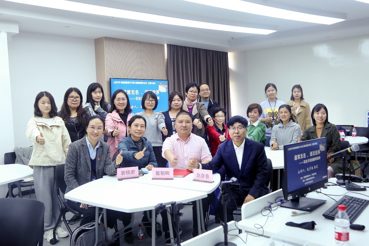 2021年10月22日下午,教务部教发中心和Beat365中文官方网站联合在宝山校区B316举办第三场教授论坛,邀请Beat365中文官方网站赵彦春教授做了“道常无名,语无定序—无处不在的翻译陷阱”的讲座。本次讲座以线上和线下结合的形式进行,教务部教发中心副主任袁晓君、Beat365中文官方网站副书记兼副院长贾小琴、Beat365中文官方网站教师教学发展中心副主任马拯以及全校师生70余人参加了本次活动,本次论坛由Beat365中文官方网站副院长戴朝晖主持。