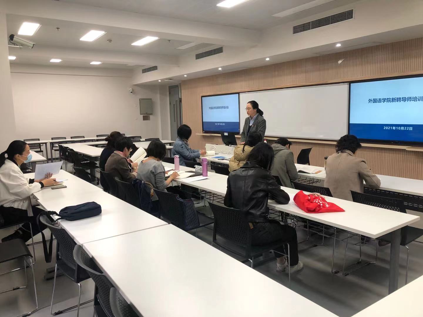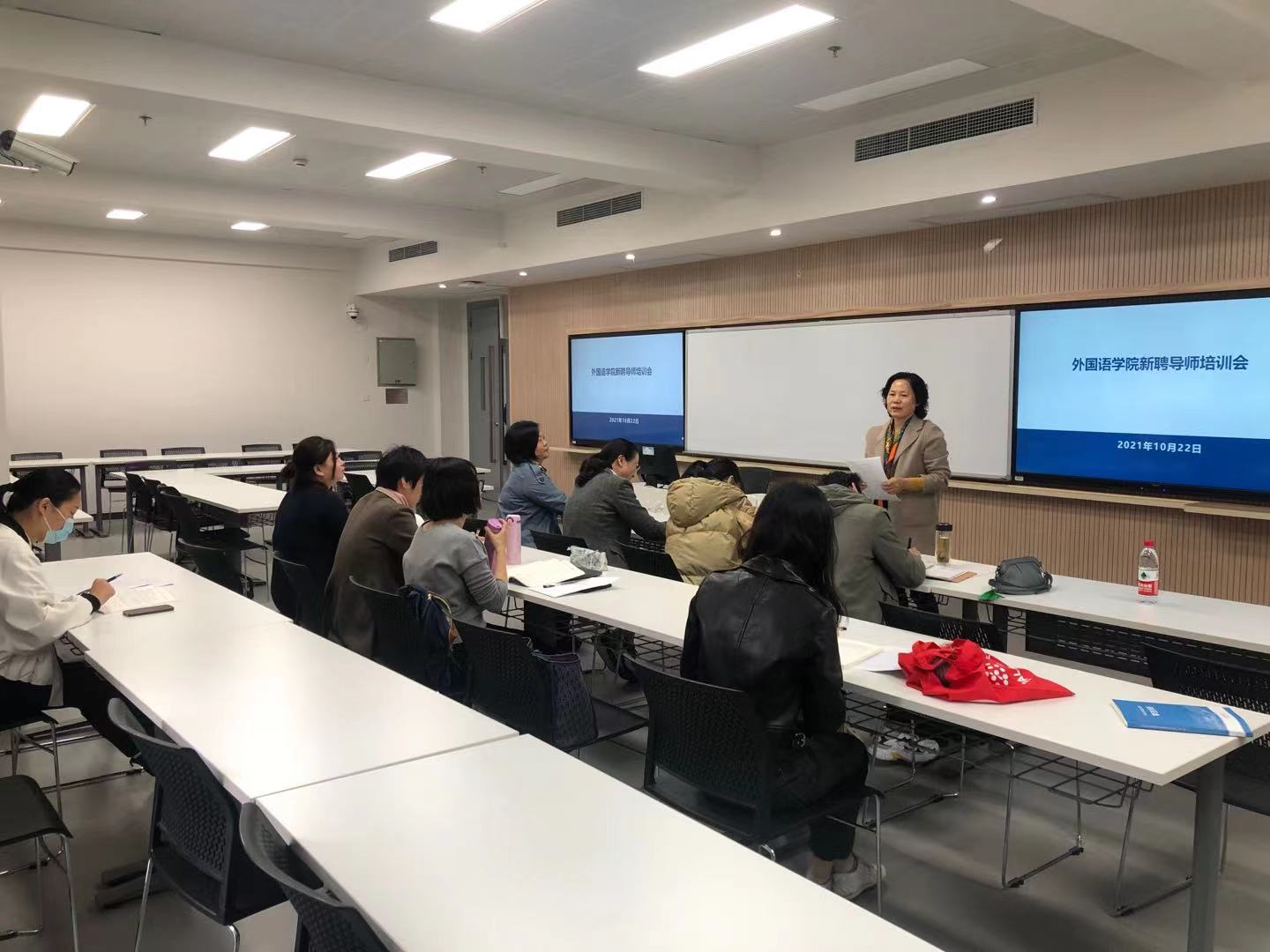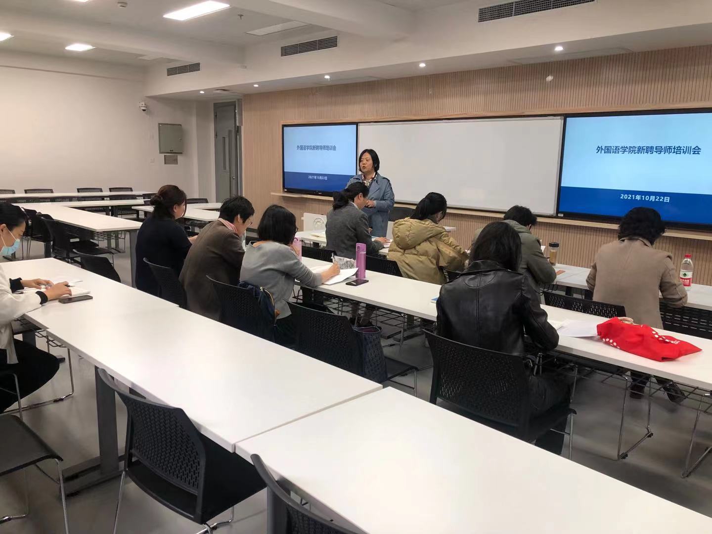 10月22日12:30,Beat365中文官方网站2021年度新晋研究生导师培训会议在Beat365中文官方网站宝山校区B308举行。Beat365中文官方网站研究生教学院长唐青叶召开并主持,学院党委副书记贾小琴,导师代表万华教授作为培训团队一同参与了培训。本次培训会议以“牢记职责、熟知规则、提升技巧、分享经验”为主题,Beat365中文官方网站2021年度新晋研究生导师共12人参会。