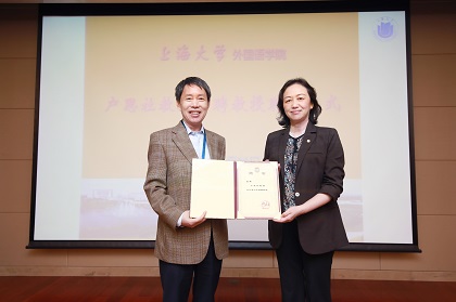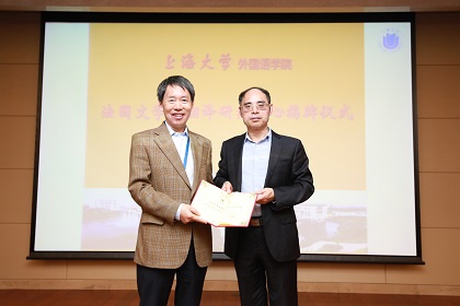 学院党委书记邓志勇向户思社教授颁发“法国文学与翻译研究中心”主任聘书