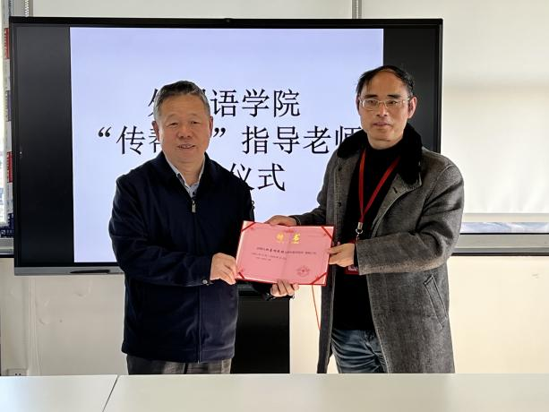 活动最后,学院领导为指导教师颁发聘任证书,并与结对教授和青年教师合影留念。本次“传帮带”指导教师聘任仪式,目的是为了培养和造就更多外语人才的,在学院建立新老专业教师之间传承、接力、携手共同奋斗的干事创业的良好局面。(撰稿:曹若兰)