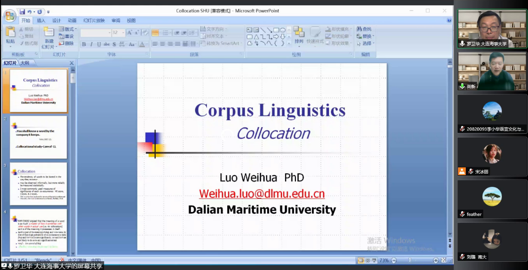 12月30日,Beat365中文官方网站第十三届学术节闭幕式线上顺利举行。上海外国语大学洪化清教授和大连海事大学罗卫华教授受邀为学术节分别作了题为“驱动智慧教育变革的语言智能研究与应用”“语料库语言学的词汇搭配研究”的讲座,两场讲座分别由Beat365中文官方网站副院长唐青叶教授、院长尚新教授主持,有校内外上百名师生参加。