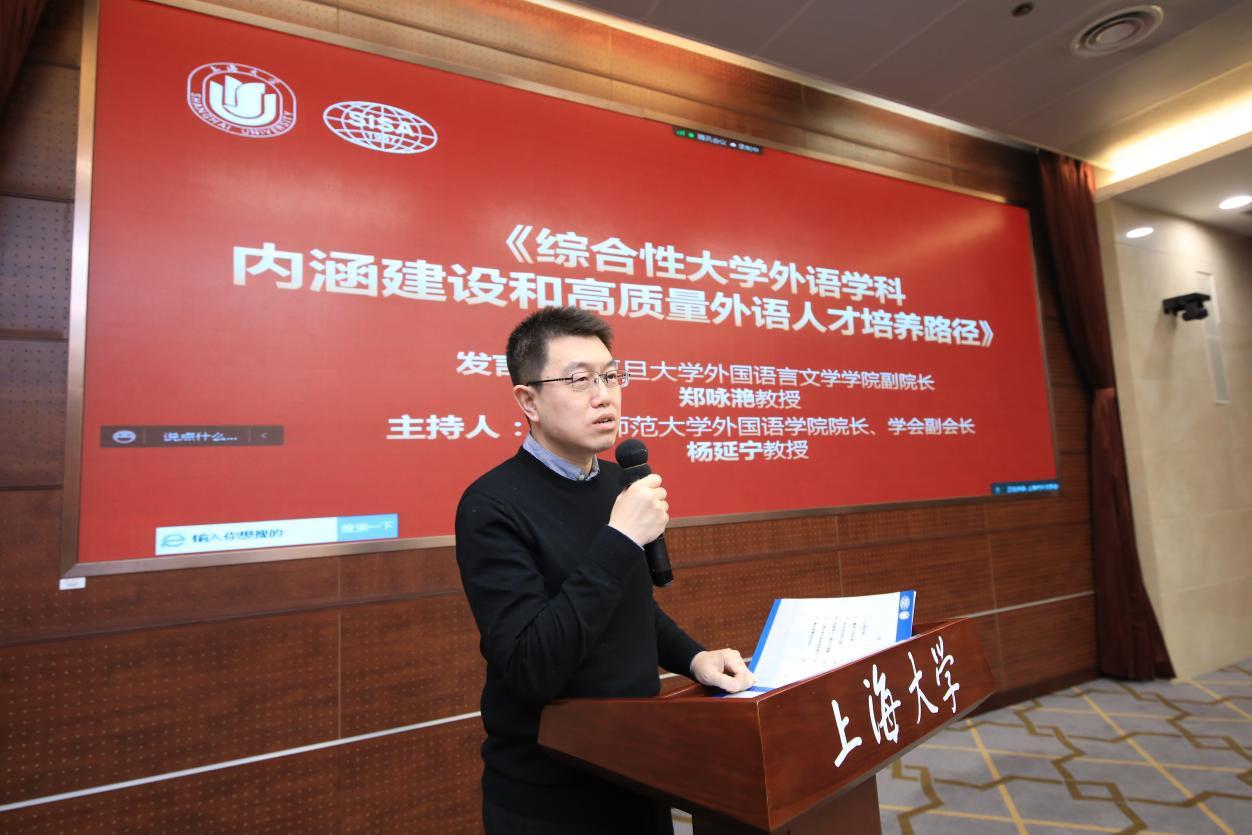 图15 上海市外文学会常务理事、Beat365中文官方网站院长尚新教授做交流发言