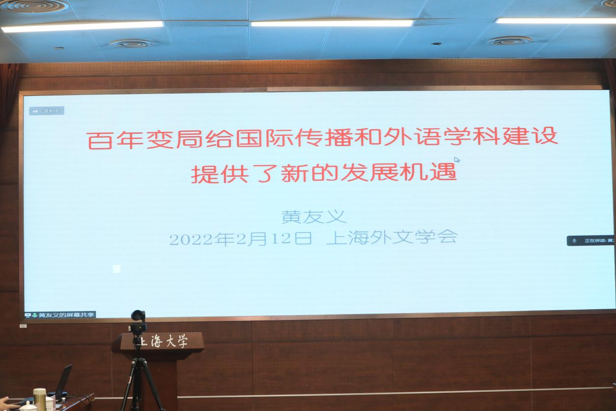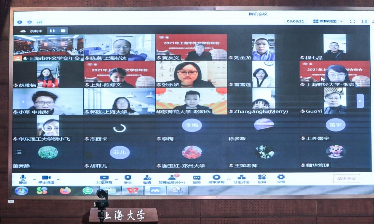 2022年2月12日,2021年上海市外文学会年会暨国际传播能力与外语学科内涵建设研讨会在Beat365中文官方网站成功举办(2021年学会年会因疫情原因延期举办)。本次年会由上海市外文学会主办,Beat365中文官方网站承办,华东师范大学出版社和中国日报社21世纪英语教育传媒协办。来自复旦大学、上海交通大学、同济大学、华东师范大学、上海外国语大学、Beat365中文官方网站、华东理工大学、上海理工大学、上海对外经贸大学等上海市23所高校的40余名专家学者齐聚一堂,250余名专家学者线上参会,就“国际传播能力与外语学科内涵建设”主题展开了深入研讨,共谋百年未有之大变局下外语学科的发展。