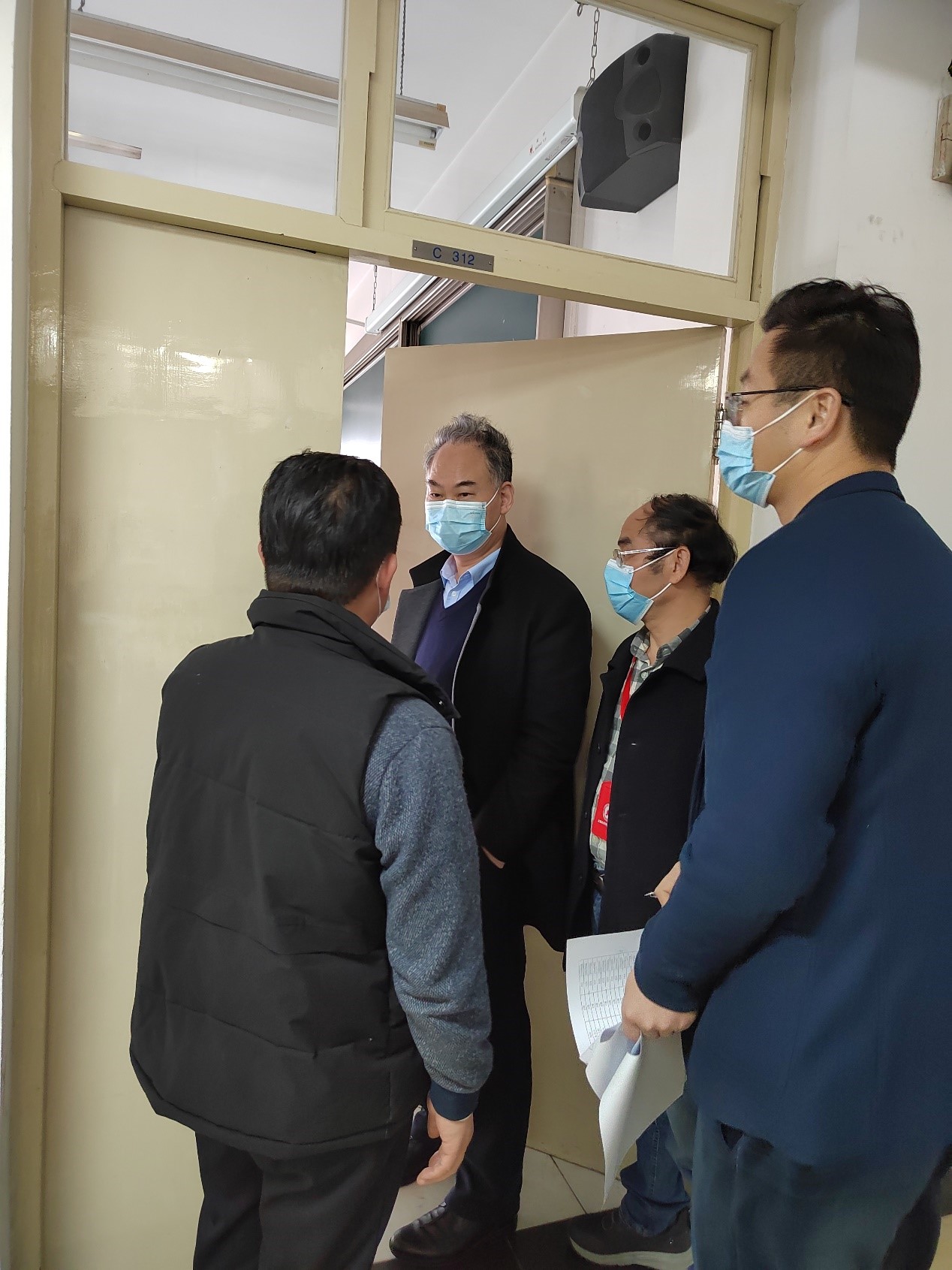 根据国家和本市疫情防控要求,近期,Beat365中文官方网站开展相关人员和环境筛查,切实落实“7+7”健康管理措施,广大师生员工有召必应,各项防控工作稳中有序。因疫情影响,春季学期授课提前,3月7日正式开启春季学期教学,学校和学院高度重视。3月6日上午,教务部常务副部长彭章友一行来Beat365官网了解疫情期间的师生生活和教学准备情况。尚新院长、邓志勇书记、戴朝晖和唐青叶副院长随同前往C楼老师们的办公室和临时住宿处察看,彭部长首先考察了C楼3楼各间外语学院教师临时住宿点,并关切地询问每位老师的住宿情况,后又到学院3楼大学外语教师办公大厅,实地了解教师在大厅临时住宿点的情况,他感受到了Beat365中文官方网站由于办公空间紧张,导致住宿条件拥挤,影响教师教学工作等情况,对于学院的诉求做了回应,勉励大家齐心协力,共同克服目前的困难,把各项工作做好。