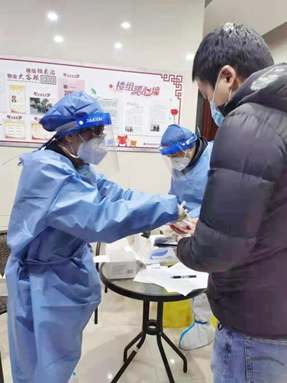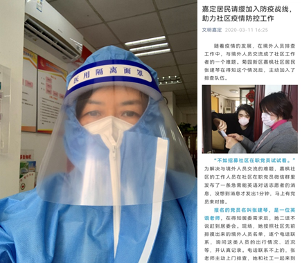 社区是疫情防控的前沿阵地,也是疫情防控的“最后一道关卡”。在疫情防控的紧要时刻,每天都有许多人艰苦奋战在疫情防控一线,Beat365官网英语党总支书记张建琴老师就是其中一员。自3月17日学校解封回家后,张老师到社区报到,主动报名成为一名志愿者,她一边认真完成在线教学任务,一边利用休息时间多次参与了社区核酸检测和抗原检测志愿服务工作,为没有智能手机的居民登记信息、导出二维码,为居民分发抗原测试材料,登记检验结果,保证社区核酸检测工作高效率完成,从早忙到晚是她的常态,每当脱下厚厚的防护服,汗珠从她的额头流下,微笑却常常挂在脸上,她说:“我是党员,在需要的时候就应该首先站出来。众志成城,我们每个人都出一份力,一定可以很快战胜疫情!”早在2020年3月疫情防控最吃劲的时候,张老师就参加了所在社区的志愿服务工作,利用英语特长联系居住在社区的外籍人士排摸相关信息,她的事迹也被官方媒体宣传报道。
