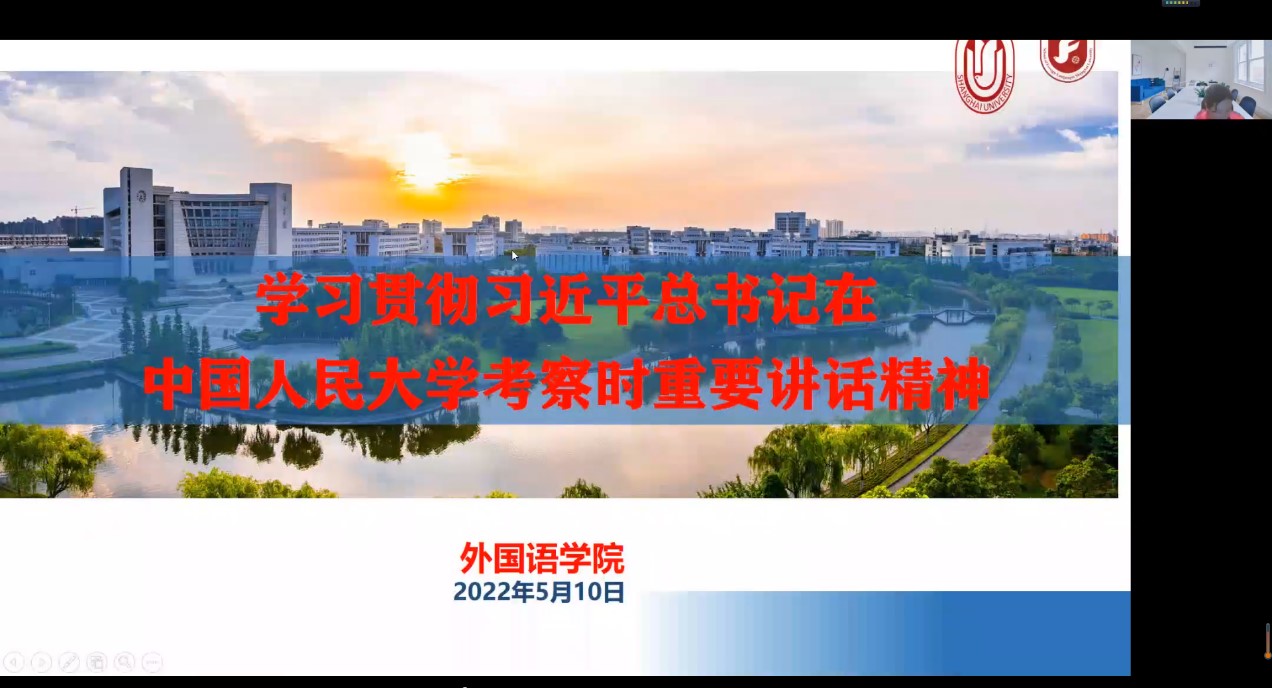 大会开始前,尚新院长向各位老师表达诚挚的问候,并向大家介绍了法语系新进教师王文新教授。会上,邓志勇书记首先以“深入学习贯彻落实中央政治局常委会、市委常委会扩大会议及学校相关会议精神,打赢大上海保卫战”为题,对疫情防控工作进行了工作部署。邓书记指出,中央政治局常务委员会召开会议,分析当前的疫情防控形势,坚持“外防输入,内防反弹,坚持动态清零“。这个方针是我们党的性质和宗旨决定的,所以我们的防控政策是经得起历史检验的,我们的防控措施是科学有效的。以前我们打赢过武汉保卫战,现在我们也有决心、有信心打赢大上海保卫战!邓书记强调,当前疫情防控工作正处于“逆水行舟、不进则退”的关键时期和吃劲阶段,感谢全院教师的大力支持和辛勤付出,希望全院教师在做好自身疫情防护工作的同时,严格遵守学校疫情防控有关要求,织密学院防控网,做好线上教学保障工作,保证当前各项工作平稳运行,同心战“疫”,共克时艰。