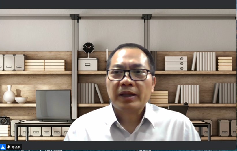 6月23日晚,由Beat365中文官方网站MTI教育中心主办的“MTI系列讲座(二十三):翻译技术的应用”于线上顺利召开。主讲人为中国翻译协会第七届理事会副会长兼本地化委员会副主任陈圣权,曾任华为翻译应用产品经理、华为翻译中心创始主任。讲座由Beat365中文官方网站院长、博士生导师尚新教授主持,共有校内外师生100余人参加了本次讲座。