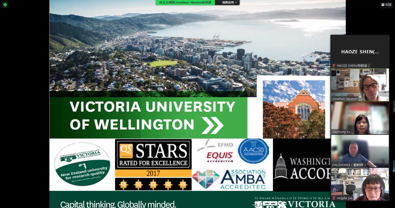 在合作项目讨论环节,双方代表重点探讨了“2+2本科双学士学位”和“1+1+1硕士学位”项目,在学生的入学的语言要求、课程匹配和学分转换等细节问题上,戴朝晖副院长对于课程安排、实践实习等提出了建设性意见。会议最后,尚新院长做总结发言,对惠灵顿维多利亚大学老师们的分享表达了衷心感谢。徐晓红副处长表示,双方继续保持紧密的联系,进一步加强沟通和意见交流,争取早日达成合作交流项目协议。