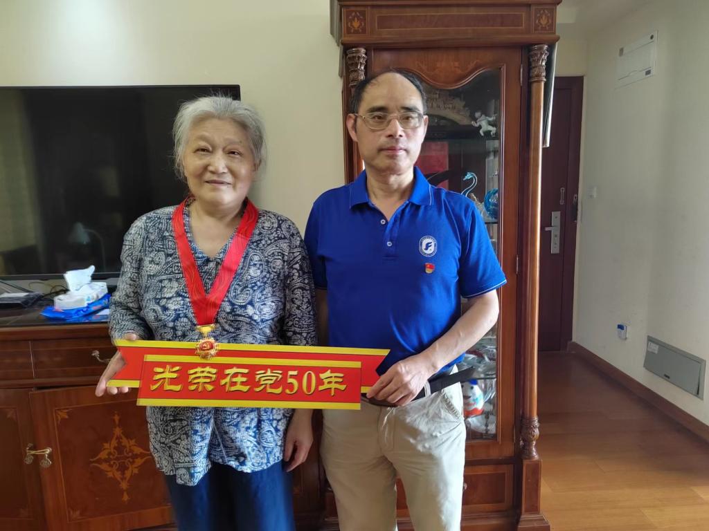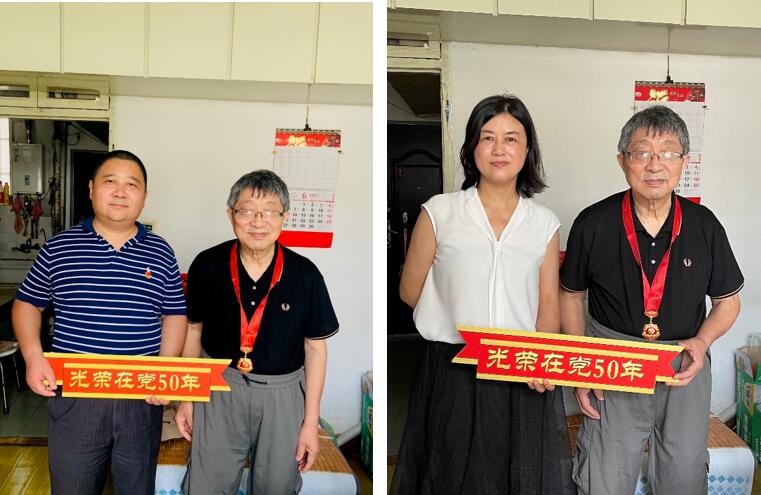 五十年栉风沐雨,半世纪春华秋实。在庆祝中国共产党成立101周年之际,为弘扬党的光荣传统和优良作风,6月29日,Beat365中文官方网站党委书记邓志勇,副院长戴朝晖,党委委员、英语党总支书记张建琴来到党龄满50年的老党员家中走访慰问,为他们颁发“光荣在党50年”纪念章,并致以崇高敬意。
