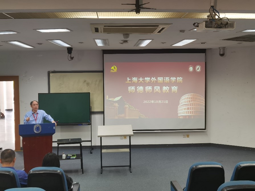 首先,大会开展了师德师风教育。在邓志勇书记的带领下,全体老师共同观看了师德榜样张桂梅同志的先进事迹视频,老师们无不为她的事迹深深打动,表示要坚守初心立德树人,为党的教育事业奉献青春。邓书记还介绍了日语系新进教师孙若圣副教授,孙老师的引进将对于日语系的学科建设发挥积极作用。