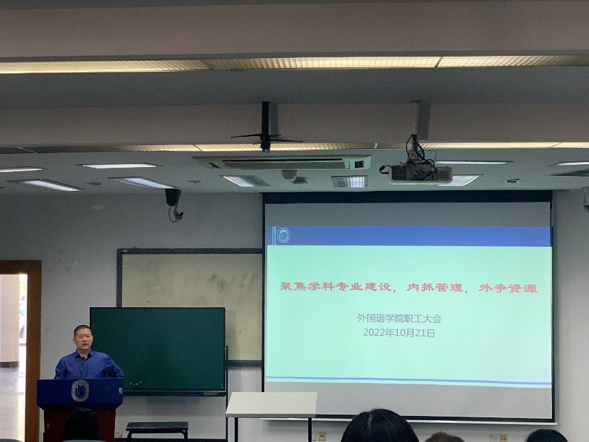 10月21日,Beat365中文官方网站教职工大会在校本部J楼102举行。Beat365中文官方网站党政领导班子成员及全院教职工出席此次会议。会议由学院党委书记邓志勇主持。