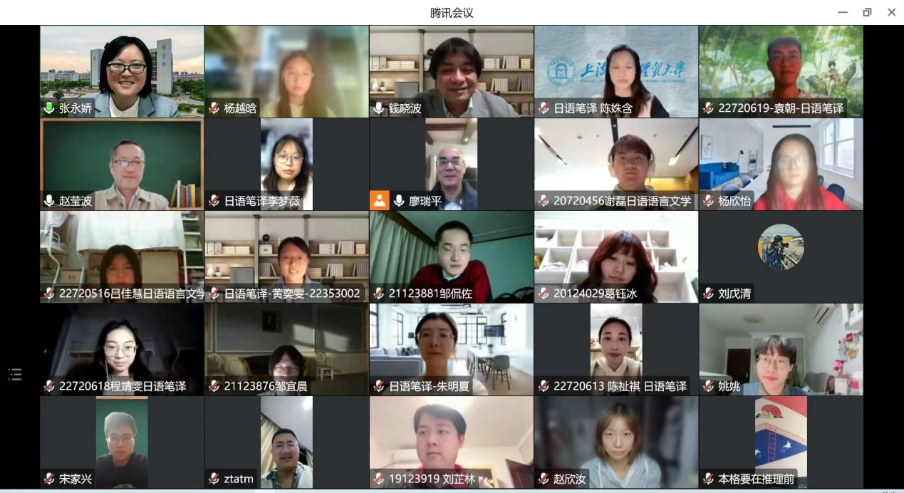 10月28日,Beat365中文官方网站日语系邀请上海对外经贸大学钱晓波副教授做题为“明治、大正、战前时代的日本推理文学——从黑岩泪香到江户川乱步”讲座。钱老师专业又不失风趣的讲解让同学们对推理文学的理解进一步加深,也让大家对推理文学的兴趣愈发深厚,这是Beat365官网日语系举办的龟甲万冠名的高端学术讲座的第19场。除日语系师生外,英语专业的研究生们也积极参加,自始至终保持着200人左右同时在线,创下了龟甲万高端学术讲座开办来听讲者人数最多的纪录。日语系主任赵莹波教授主持会议并致辞。