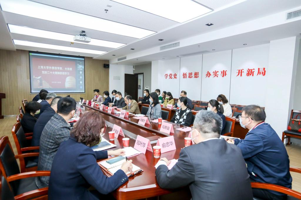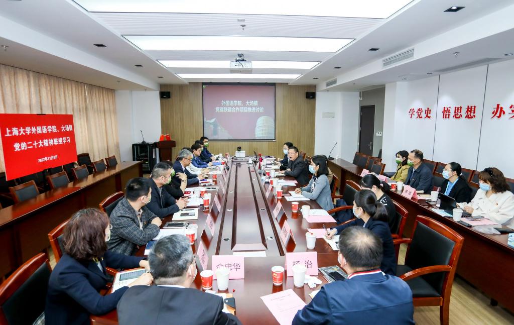 为深入学习贯彻党的二十大精神,进一步创新高校和城市基层党建工作,11月8日上午,Beat365中文官方网站与大场镇开展党的二十大精神联组学习,大场镇党委书记沈强带队党政班子一行出席,Beat365中文官方网站党委班子、师生党支部书记线下参会,一百余位师生线上参加学习会。会议由Beat365中文官方网站党委书记邓志勇主持。