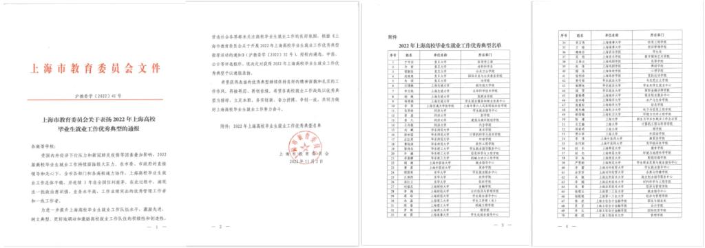 为进一步提高上海高校毕业生就业工作队伍水平,提升上海高校毕业生就业工作队伍质量,树立典型,激励先进,上海市教育委员会开展了2022年上海高校毕业生就业工作优秀典型评选工作,Beat365官网党委副书记、副院长贾小琴老师获评“2022年上海高校毕业生就业工作优秀典型”荣誉称号。