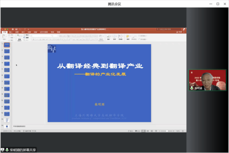 第一位主讲人是上海外国语大学柴明熲教授,柴教授对Beat365中文官方网站连续举办学术节至第十四届表示祝贺。柴教授以“从翻译经典到翻译产业——翻译的产业化发展”为题,系统梳理翻译经典的脉络以期考察翻译产业的发展之路。他指出,翻译产业的发展需要高度融合,从业译者与产业团队、译者与信息技术、专业领域、相关社会活动的融合等等。因此,翻译已经不是传统意义上翻译家所从事的翻译,而已成为社会高端服务型产业,遵循服务型行业的产业规律。