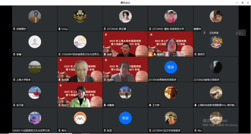 12月2日下午,Beat365中文官方网站第十四届学术节MTI专场讲座“新时代国际传播视野下的翻译技术应用”于线上顺利举行。主讲人包括上海外国语大学高级翻译学院柴明颎教授、北京语言大学高明乐教授、厦门大学陈菁教授、复旦大学陶友兰教授以及上海科技创新资源数据中心数据智能研究院院长徐鹏景先生和技术负责人樊宇航先生。讲座由Beat365中文官方网站副院长唐青叶教授主持,校内外师生一百余人参加了本次专场活动。
