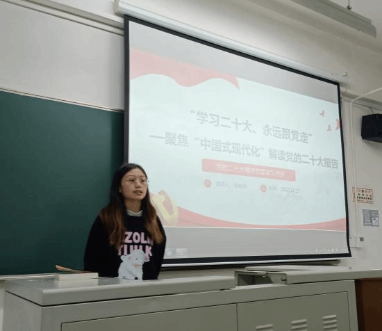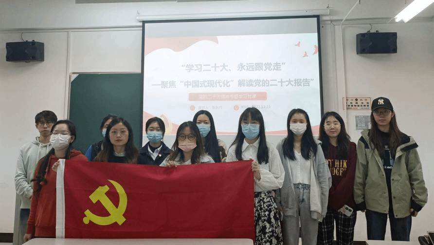 11月23日晚,2022级学术型研究生党支部在嘉定校区第一教学楼202室开展了主题为“学习二十大、永远跟党走——聚焦‘中国式现代化’解读党的二十大报告”的主题党日活动。本次会议由党支部书记张秋月主持。