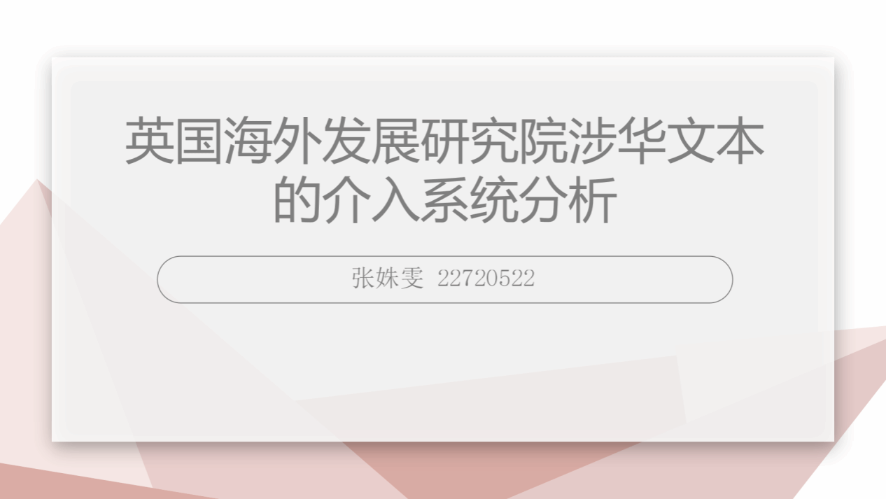 本期活动中,22级外国语言学及应用语言学方向研究生张姝雯同学分享了秋季学期撰写的课程论文。她论文的题目是《英国海外发展研究院涉华文本的介入系统分析》,包括引言、介入系统与智库话语互动、语料搜集及研究方法、介入系统的历时和共时话语特征、人际意义的实现、结语等几个部分。