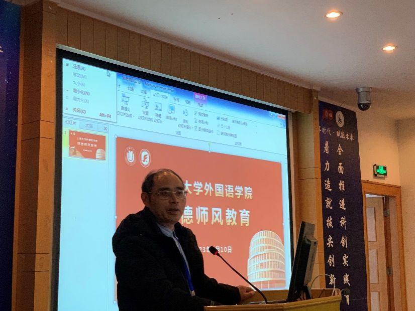 会议伊始,邓书记代表班子对全体教职工的辛苦付出、对学院发展的全力支持表示衷心感谢,希望全体教职工群策群力,团结一心,扎实工作。之后,大会开展了师德师风教育,邓书记介绍了全国教书育人楷模郝跃的先进事迹,郝跃教授怀着对国家教育事业的无限忠诚与满腔热忱,选择扎根祖国西部,在高等教育战线上辛勤耕耘,他始终把立德树人作为毕生追求。老师们无不为他的事迹深深打动,表示要坚守育人初心,秉承科教报国之志,为党的教育事业奉献青春。