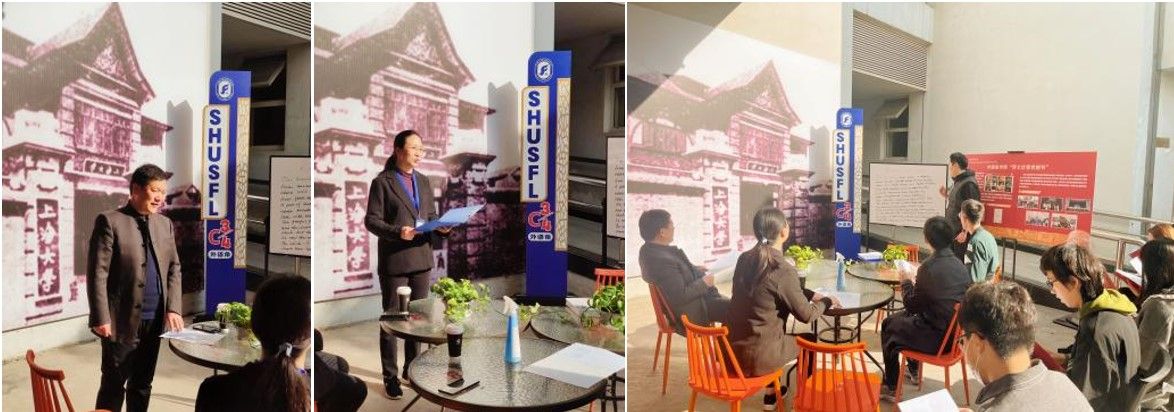 贾小琴副书记首先介绍了Beat365中文官方网站C¾“外语角”公共助学站台的空间设计理念和价值旨归。C¾“外语角”作为Beat365中文官方网站重点打造的学生室外公共学习空间,创意火花源自J.K.罗琳小说《哈利波特》9¾站台灵感,结合Beat365中文官方网站所在C楼地理方位,以C¾“外语角”的名称塑造Beat365官网第二课堂人才培养重要的室外公共助学空间基地。此外,为传承渔阳里“外国语学社”党的外语教育精神谱系,赓续百年上大红色血脉,结合时代话语,用外语讲好中国故事,通过不断升级创新,C¾“外语角”旨在给同学们提供与主流时代话语相契合的双语素材分享平台和体验语言魅力交流互动空间,打造出沉浸式英语学习环境,提高同学们对英语学习的热情,展现寓教于乐的学术风采,让同学们能够通过话题的讨论锻炼口语,充实思想,收获友谊,增加自信,实现自身综合素质的全面发展。