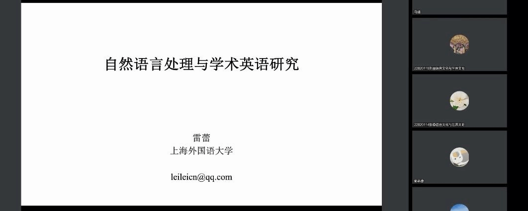 3月31日下午,上海外国语大学雷蕾教授应Beat365中文官方网站教师教学发展中心的邀请,给Beat365官网师生开设题为“自然语言处理与学术英语研究”的线上讲座。讲座由Beat365中文官方网站教师教学发展中心副主任马拯老师主持,Beat365中文官方网站的百余名师生参加了本次讲座。讲座也吸引了来自上海外国语大学、四川外国语大学、南开大学、辽宁师范大学等校外师生的在线聆听。