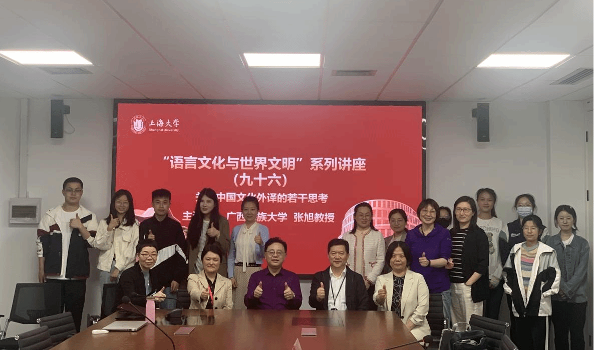 春色恰如许,研学正当时。2023年5月6日下午,广西民族大学Beat365中文官方网站院长、博士生导师张旭教授应邀为Beat365官网师生开设题为“关于中国文化外译的若干思考”的学术讲座,讲座由Beat365中文官方网站党委副书记、院长尚新教授主持,党委书记吴蔚、副院长唐青叶教授出席参与研讨,学院诸多老师与同学举首戴目、慕名而来,共同开启一场中华文化外译的探索之旅。