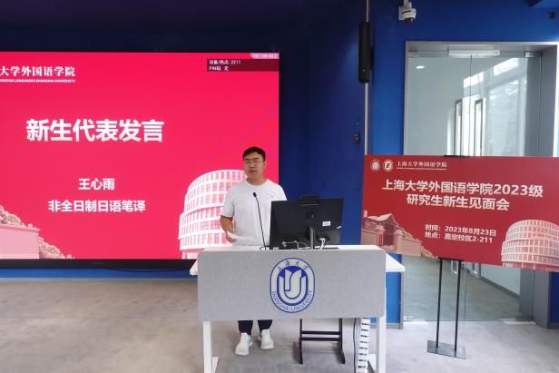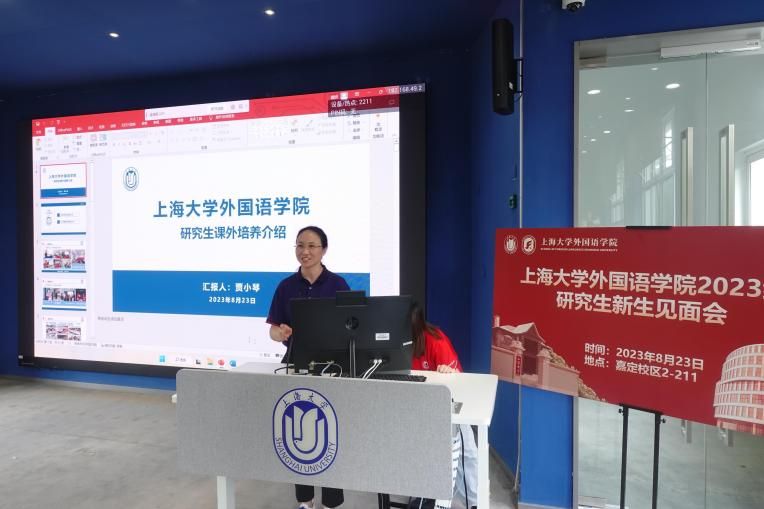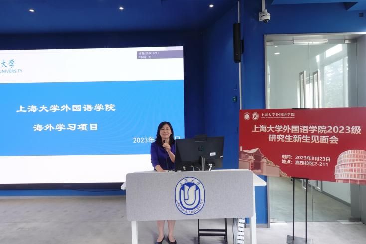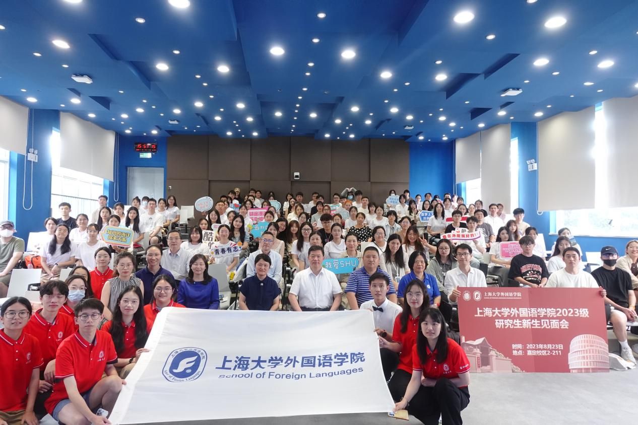 Beat365中文官方网站2023级研究生新生见面会于8月23日14:00在嘉定校区二教211教室顺利举行。Beat365中文官方网站党委书记吴蔚,党委副书记、院长尚新,党委副书记、副院长贾小琴,副院长戴朝晖,副院长唐青叶,副院长阚怀未,英语系主任张建琴,日语系主任赵莹波,法语系主任王文新,法语系副主任向维维,MTI中心副主任花亮,研究生辅导员曹若兰,研究生教学秘书张静,研究生教学秘书姚远及2023级全体研究生出席了本次活动。本次新生见面会由研究生会文体部部长程路主持。