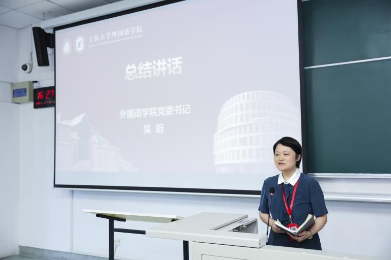 最后,学院党委书记吴蔚老师作了总结发言。吴书记希望学院2023级本科新生尽快完成从高中到大学的角色转变,主动适应大学生活,在探寻外国语言文字魅力的同时,提升专业认知,树立专业自信,强化专业素养,以傲人的雄心、执着的恒心和坚韧的求学态度学海泛舟,力争做一个全面发展的人,将小我融入大我,争做担当民族复兴伟业的时代新人。