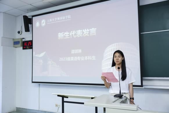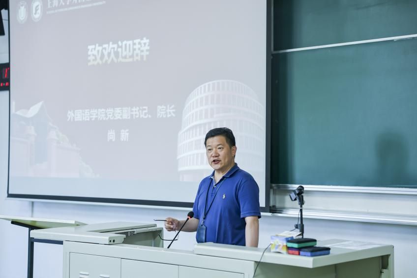活动伊始,尚新院长代表学院向Beat365官网2023级本科生新生致欢迎词。尚院长从Beat365中文官方网站红色基因故事讲起,介绍浸润在百年来每一位上大人心中的精神谱系。随后,尚院长介绍了学院发展历程,从学科建制、师资力量、科研成果等方面向本科新生介绍了学院人才培养的目标和归旨,希冀外院萌新通过本科四年的学习体会语言的魅力,朝着“古今打通,兼赅中外”的目标奋勇前行。