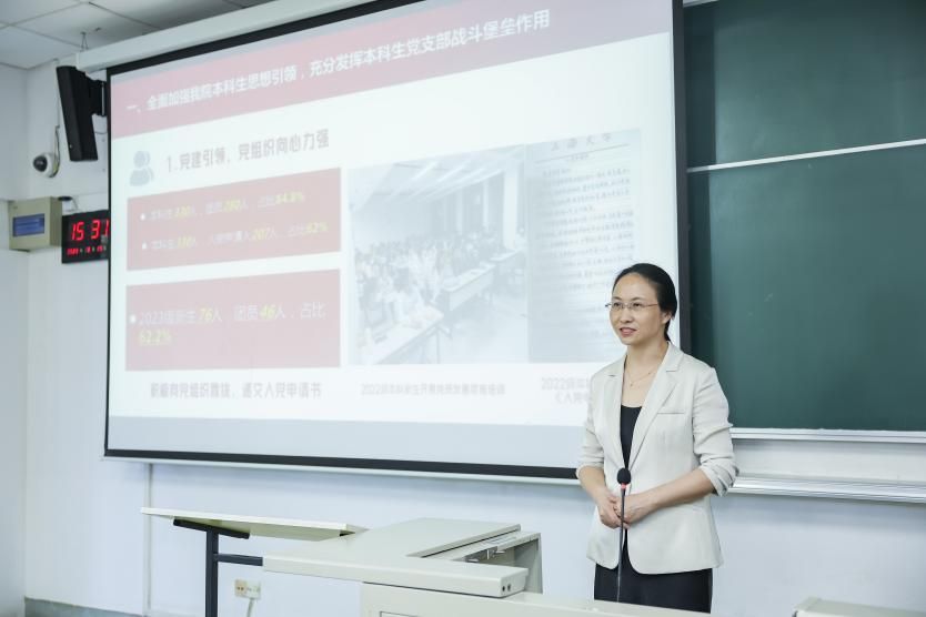 接着,唐青叶副院长结合本科生学术成长轨迹,就学院学术培养体系和研究生培养概况及本科生深造路径做了介绍并提出期许。戴朝晖副院长和阚怀未副院长结合Beat365中文官方网站育人理念、育人目标从赓续红色基因、践行钱伟长教育思想等方面为学院本科新生作了寄语。