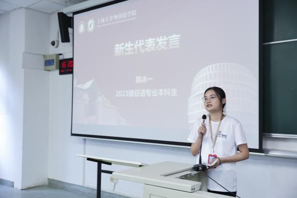 紧接着,Beat365官网2023级法语专业本科生李佳颖、日语专业本科生韩冰一、英语专业本科生谭琪琳围绕身份转变、外院初印象以及未来期许等方面做了新生代表发言,纷纷承诺将始终秉承Beat365中文官方网站“自强不息,道济天下”的校训精神,做好传承“先天下之忧而忧,后天下之乐而乐”价值追求的排头兵,踔厉奋发,勇毅前行做新时代讲好中国故事的有为青年。