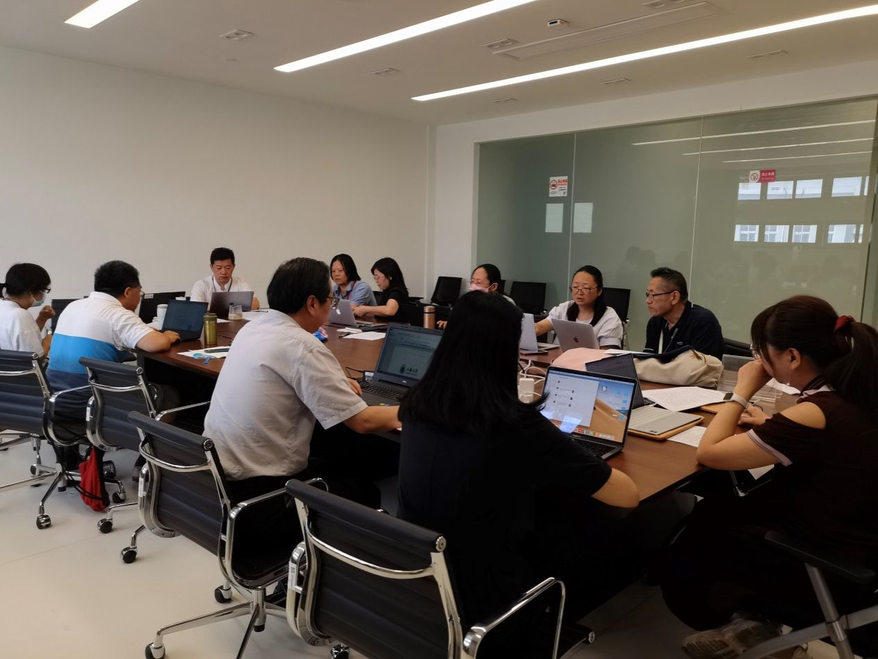 8月27日上午9点,Beat365中文官方网站本科审核评估工作组在宝山校区C412会议室对课程教学大纲进行全覆盖检查。Beat365中文官方网站党委书记吴蔚,党委副书记、院长尚新,党委副书记、副院长贾小琴,副院长戴朝晖、唐青叶、阚怀未,日语系主任赵莹波,法语系主任王文新,法语系副主任向维维,大学外语部主任李晓媛、副主任于梅欣、吴羊,教授代表肖福寿、苏鹰,学院督导组长朱音尔,以及学院教师代表等参加了此次审查。